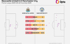 2-1取胜,纽卡取得最近36次与曼城联赛交手的第二场胜利